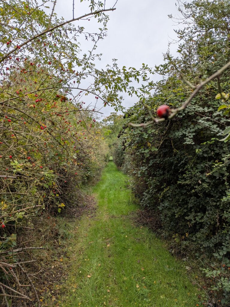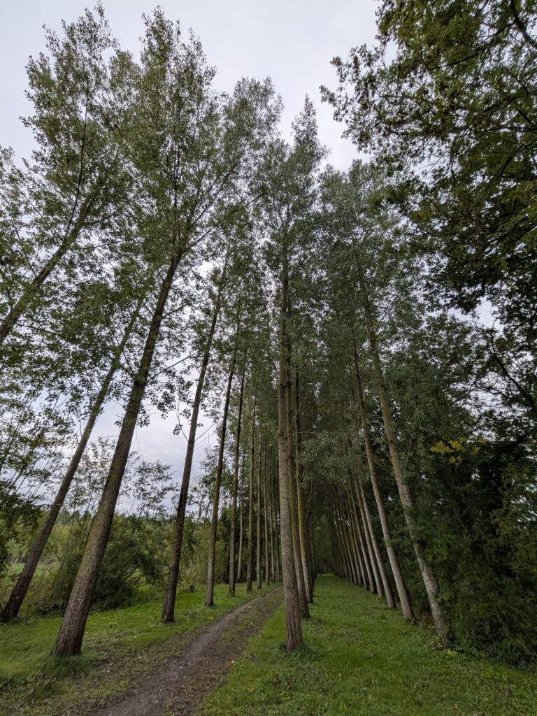 La trace est superbe, vraiment gravel comme j’aime à faire des détours inutiles pour chopper le petit chemin (pourri). Avec la pluie, le chemin est d’ailleurs bien glissant et bien gras. Mais c’est ce type de trace que je voulais.