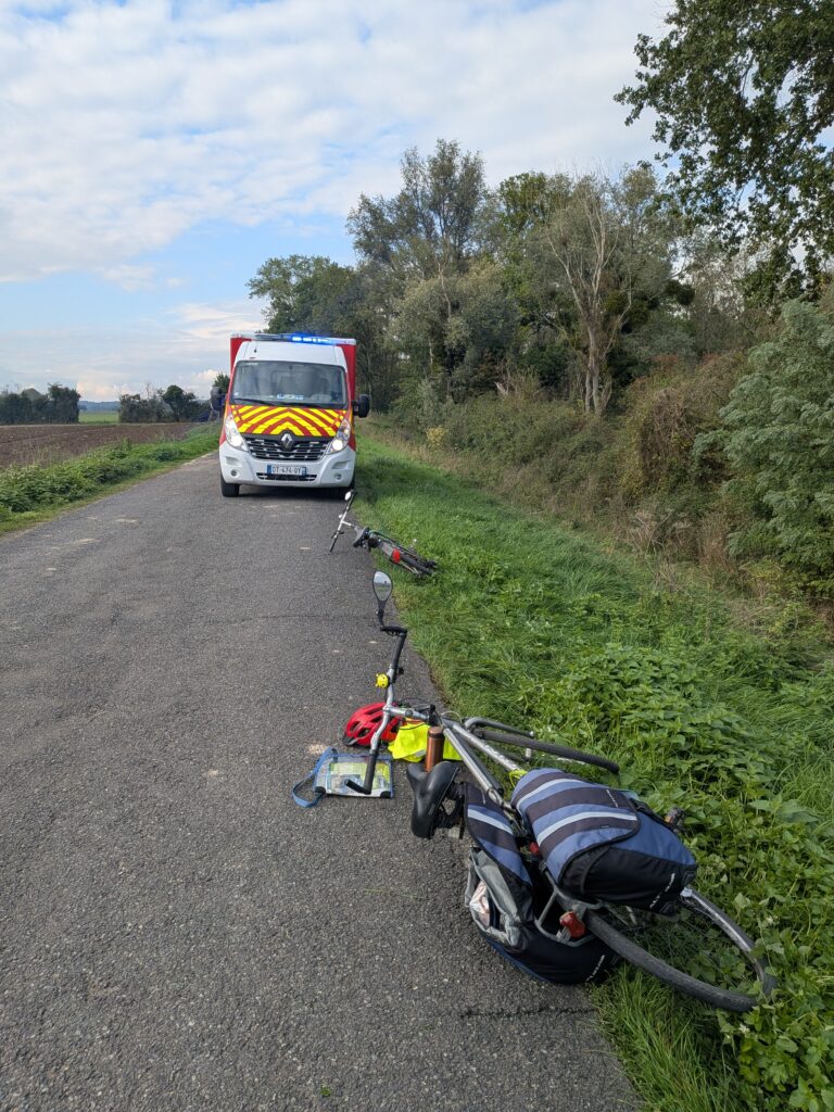 Au final j’ai passé près d’une heure avec eux et je ne suis parti qu’après m’être assuré que la dame savait où allait son compagnon (près de 80 ans !) et comment le rejoindre alors qu’elle devait encore aller au camping déposer son vélo (l’autre pris gentiment en charge par les pompiers qui l’ont déposé au camping, champions).