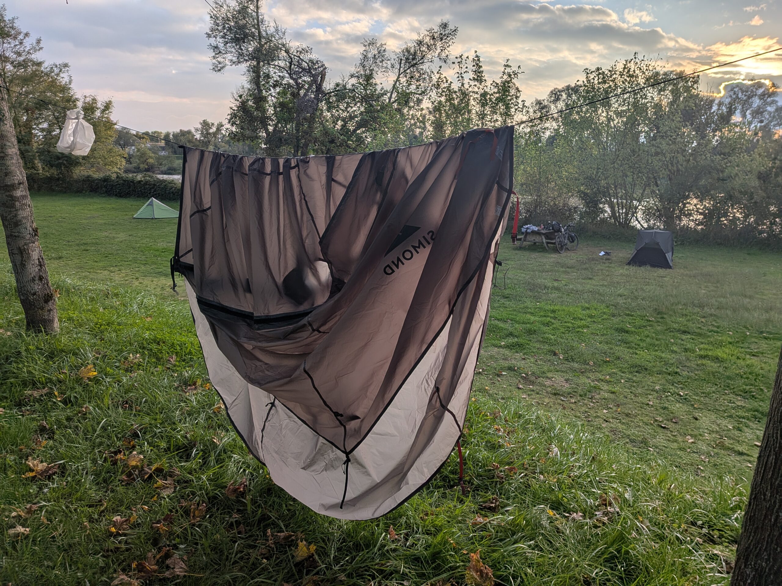 Choix trois. Ça me permet de prendre le temps de sécher ma tente, totalement trempée à monter/démonter sous la pluie et de manger chaud.