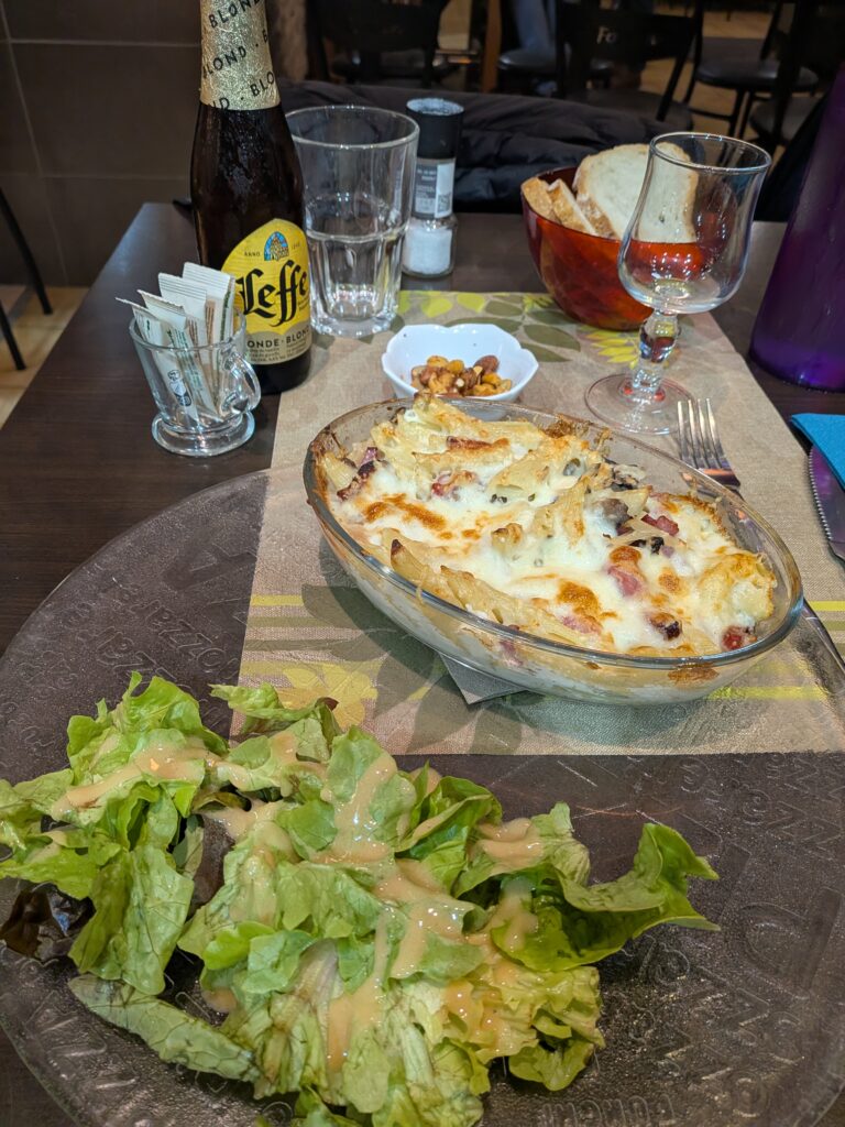 Une binouse, un bon gros plat dz pâtes et un moelleux chocolat. Et tout le tempsnde rédiger cette note.